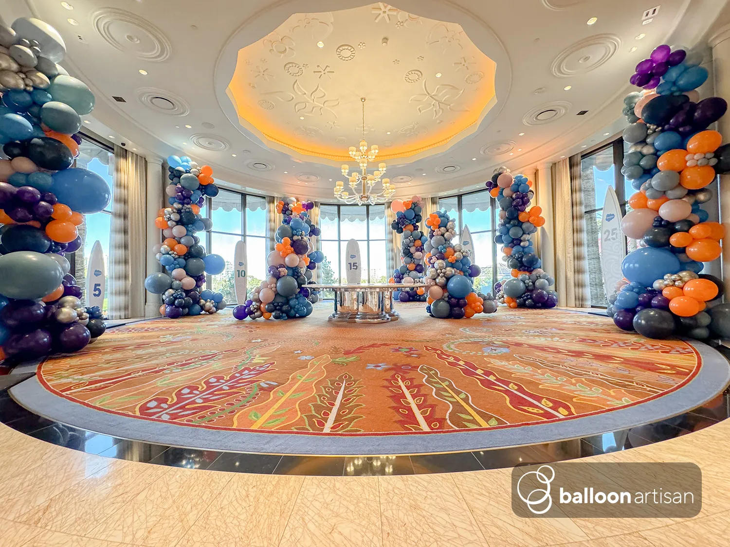 When it comes to decorating, no other physical material can fill as much space with as little waste as balloons can. This installation spanned a width of 80' and the largest single balloon was over 8' tall. So while it may not be as eco-friendly as a blank wall, a balloon installation is one of the most eco-friendly ways to completely transform a venue.
